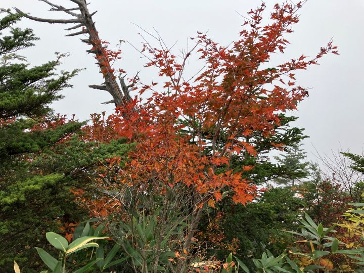 当日はあいにくの天気ではありましたが、無事に登頂・下山することができました。山頂付近は気温が低いため、さまざまな植物の紅葉が見られました。