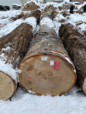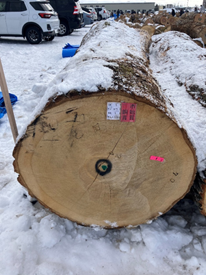 雪に包まれた冬の北海道旭川市で、木の香りが静かに満ちる北海道産銘木市を訪れ、現地視察を行いました。市場には北海道産広葉樹をはじめとする優良木材が数多く並び、全国各地から木材関係者が買い付けに訪れます。まもなく500回の開催を迎えるこの伝統ある市を舞台に、今回は旭川銘木市で出品の多い樹種についてご紹介したいと思います。