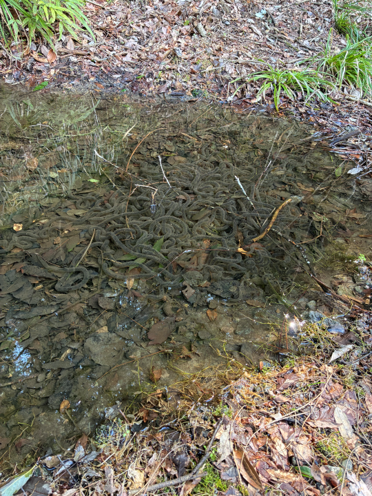 昆虫や魚が水面を揺らす様子が見られたり、ところどころでカエルの卵や生まれたばかりのオタマジャクシを見つけたりすることができました。