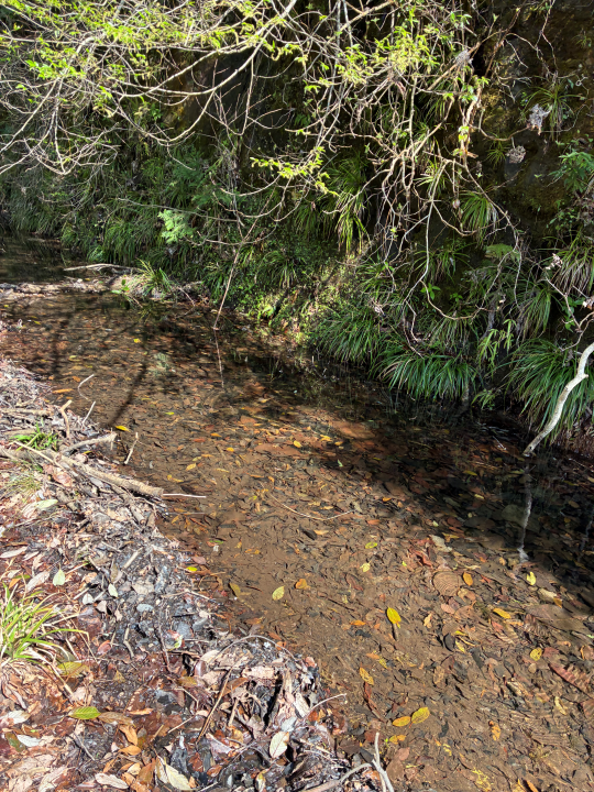 山林にアクセスする林道のわきには小さな川が流れています。
